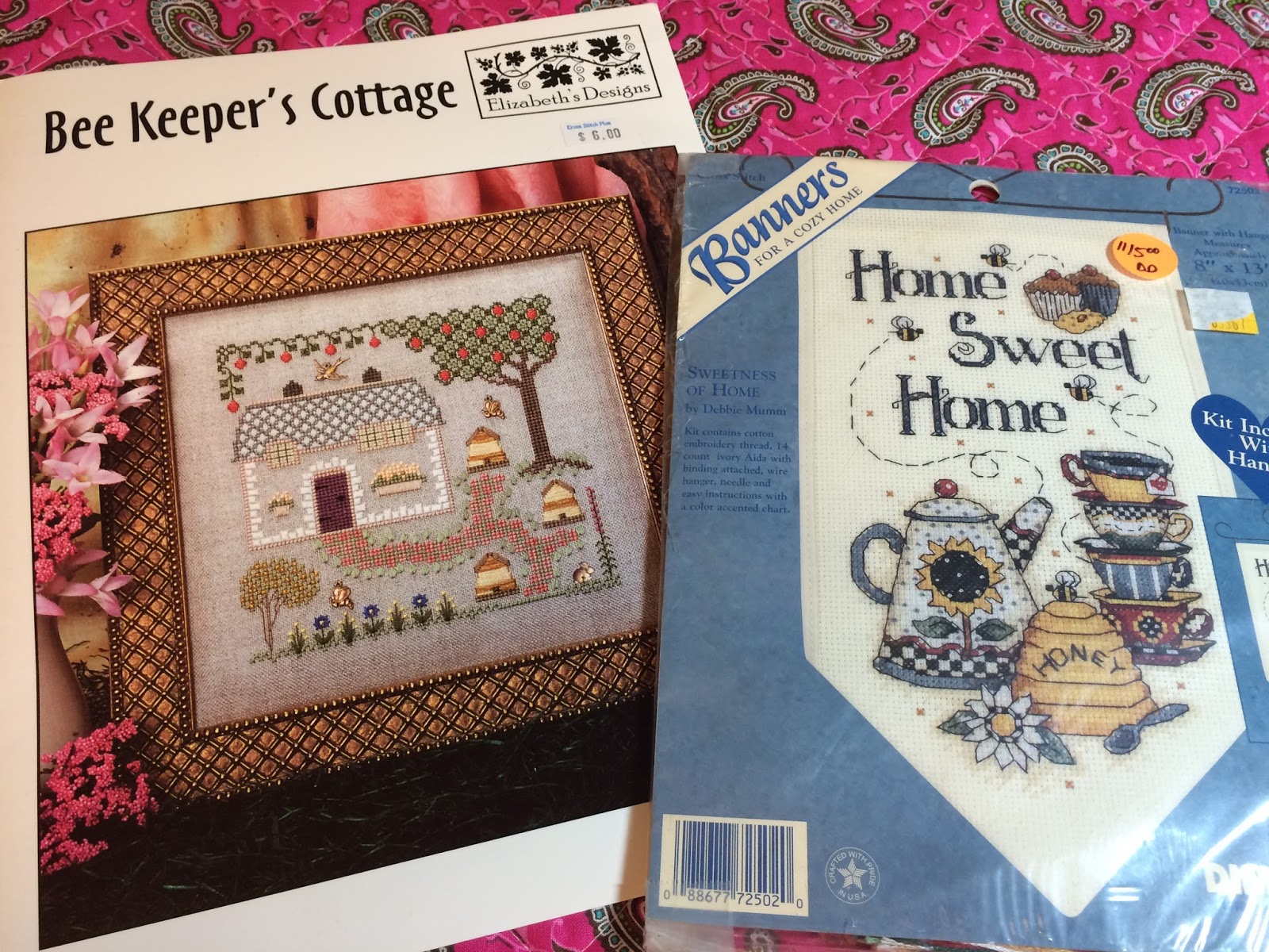 More bee items! Again, my roommate found the banner on the right for me. :0) I love both of these and they will make for some fun stitching time.